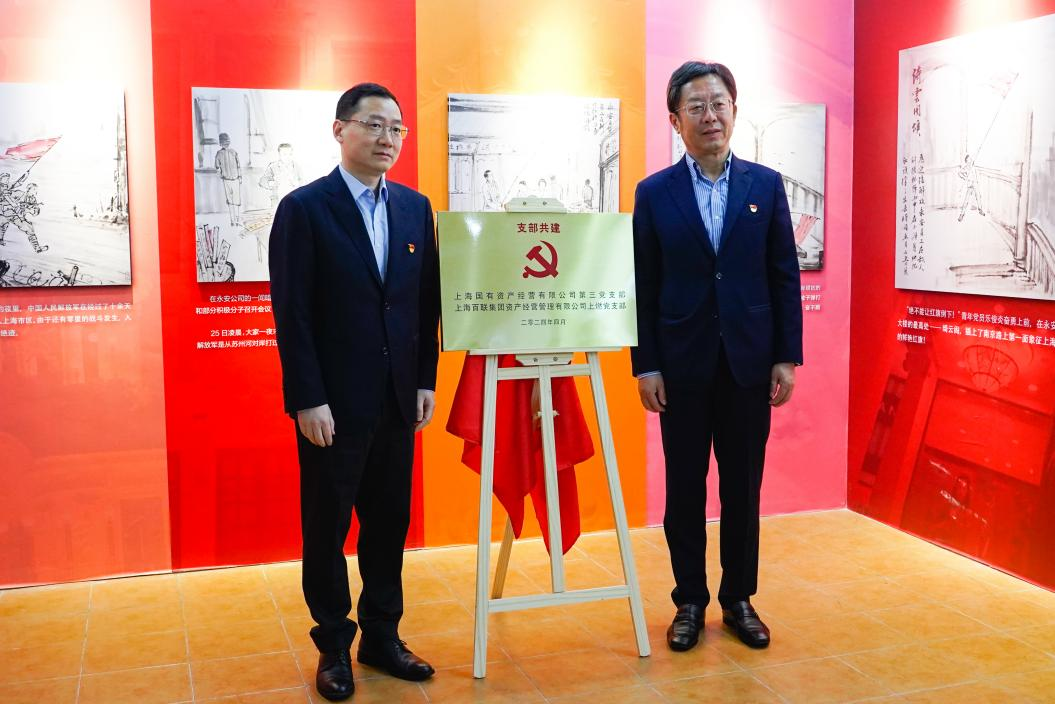 签约仪式上,上海百联资产经营管理有限公司党委书记、董事长钱宏文与上海国有资产经营有限公司党委副书记、纪委书记、工会主席王炯为支部共建揭牌,希望以推动发展、服务群众、凝聚人心、优化管理、促进和谐为目标,充分发挥党建在中心工作开展中的组织优势和政治优势,共同推动双方在党的政治建设、思想建设、组织建设、作风建设、纪律建设、制度建设等各方面取得新成效,新突破。