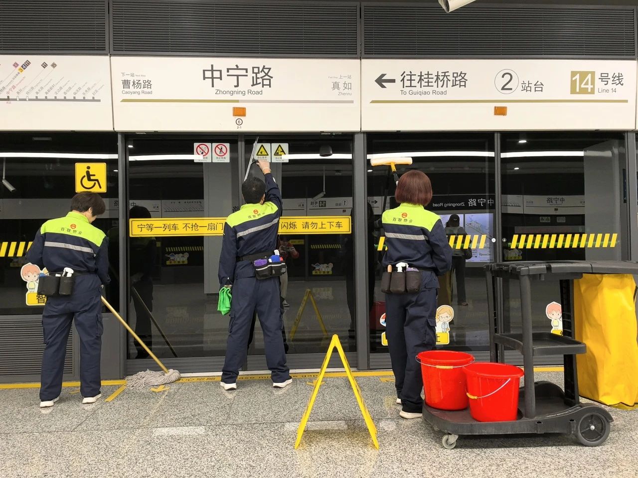 责任齿轮不停歇,为城市运转保驾护航。百联物业肩负着上海轨道交通6号线和14号线的保障任务。轨道交通事业部结合以往春节期间地铁客流量变化特点,早早制定了“新春保洁专项计划”,为乘客营造一个干净、整洁、温馨的出行环境。在服务一线,真新新村站车厢清扫员魏参林在例行保洁作业中,先后发现乘客遗失的新春礼盒、行李箱,第一时间交予站务员,帮助焦急的乘客找回失物,展现了百联物业人用心服务、用情守护的责任与担当。在豫园、陆家嘴、世纪大道、东方体育中心等大客流站台,站务员们满怀热情,熟练引导游客进出站,耐心解答路线问询,为城市运转织就坚实的安全护网。