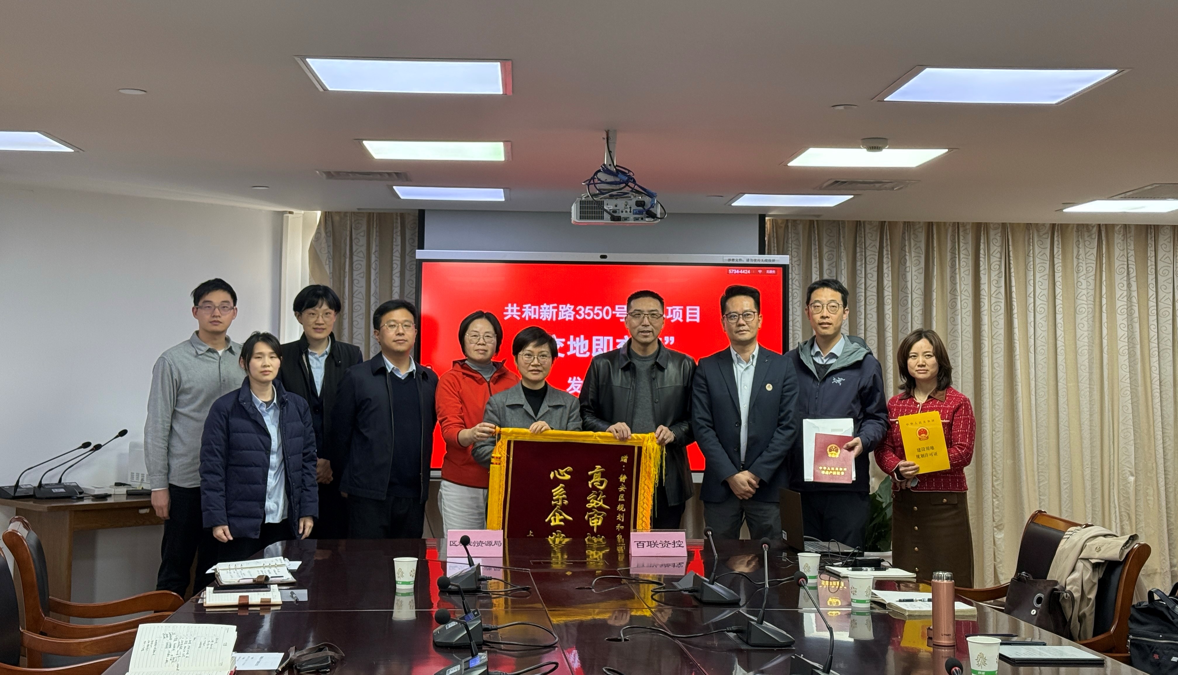 4月1日,百联资控在静安区规划资源局指导下,同一天顺利获得共和新路3550号新建项目交地确认书、建设用地规划许可证及不动产权证书,实现“交地即交证”,有效缩短项目前期审批周期,为项目后续开发报建、融资抵押等夯实了前置条件。