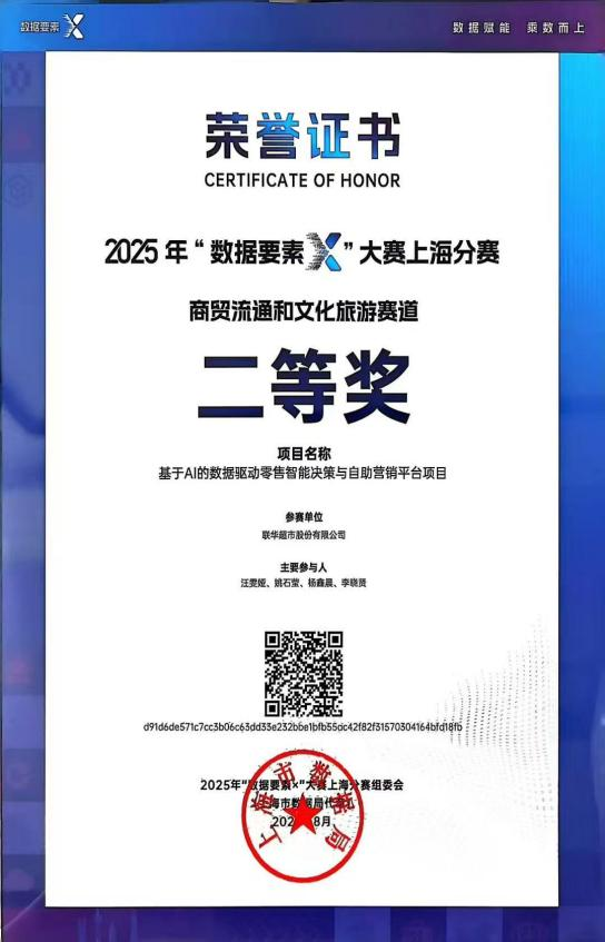 联华股份斩获2025年“数据要素×”大赛上海分赛商贸流通赛道奖项
